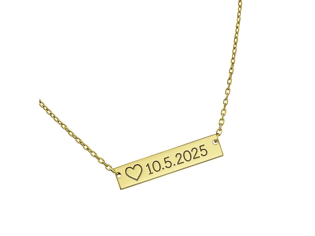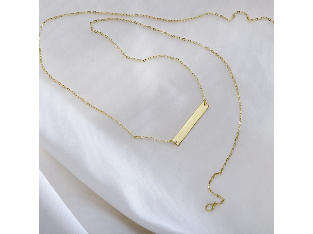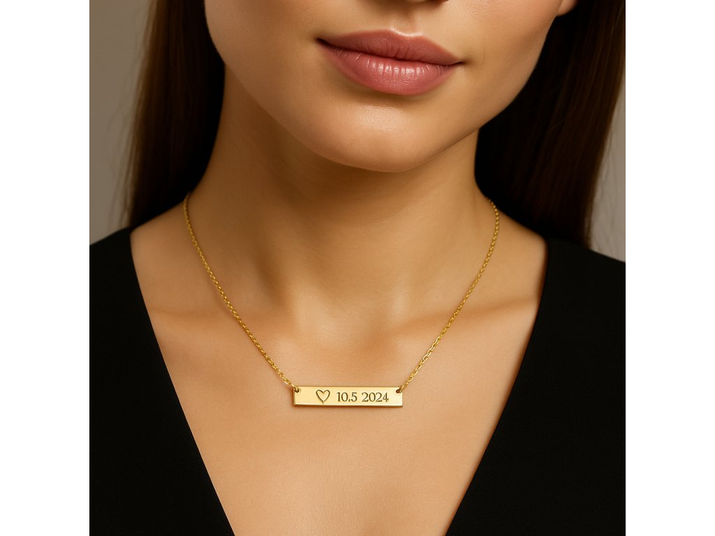 Elegantní náhrdelník ze žlutého zlata s jemnou destičkou, na kterou vám vygravírujeme jemný motiv, text, datum nebo znamení zvěrokruhu. Tento minimalistický šperk je ideální pro každodenní nošení a zároveň originální dárek s osobním významem.