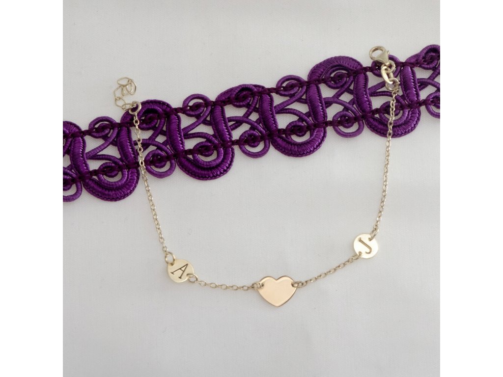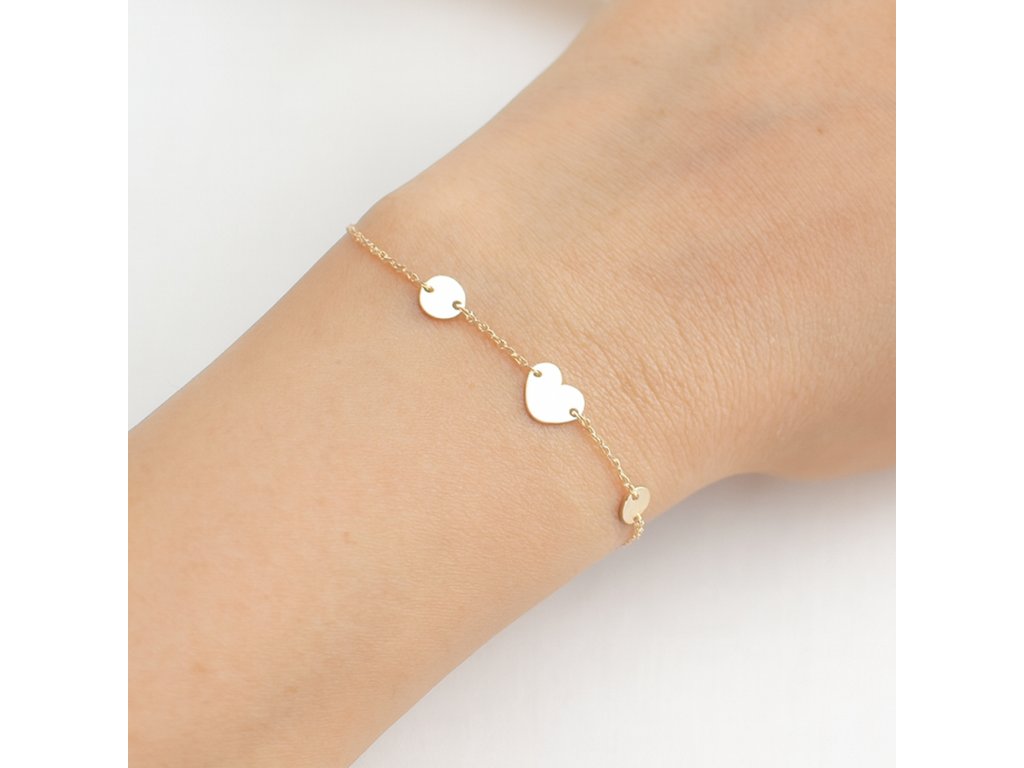Zlatý náramek se srdcem a dvěma ploškami – s možností gravírování