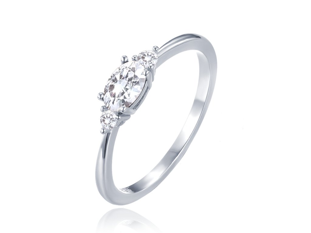 Hledáte pohádkový zásnubní prstýnek za rozumnou cenu? Máme pro vás jemný a moderní prsten s velkým oválným centrálním zirkonem a dvěma na stranách. Šperk je vyroben z pravého rhodiovaného stříbra a dlouho si tak udrží svou barvu i lesk. Velikost uveďte do objednávky.