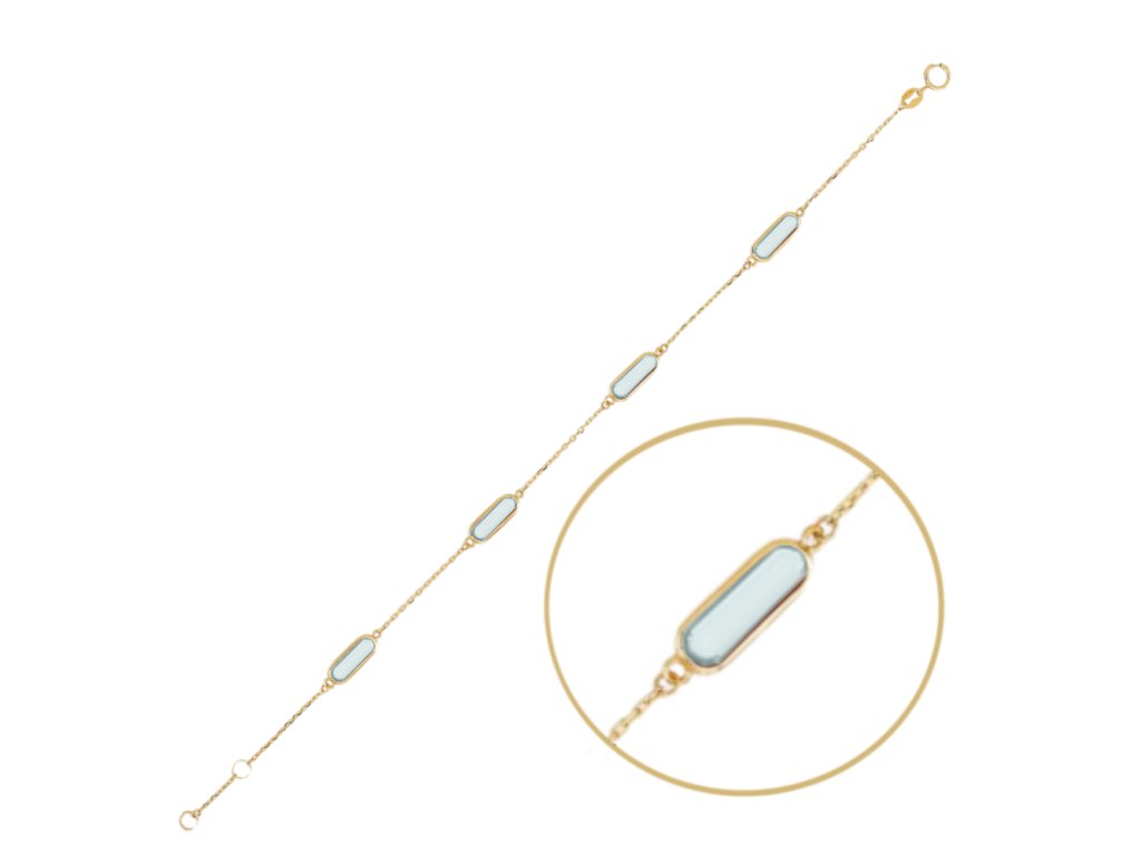 Krásný moderní náramek z pravého 14karátového zlata zdobí modré kameny. Náramek je vhodný pro každodenní nošení i výjimečné příležitosti. Kvalitního zpracování si všimnete hned po prvním nošení. Česká značka šperků a náramkových hodinek MINET vznikla v roce 2017 a na tvorbě doplňků se podílejí 3 sestry. Sbírají inspiraci doma i v zahraničí a přinášejí na trh stříbrné a zlaté šperky, které jsou jiné a dodávají osobitost jednoduchému outfitu i sebevědomí ženě, která je nosí.Doplňkové parametry