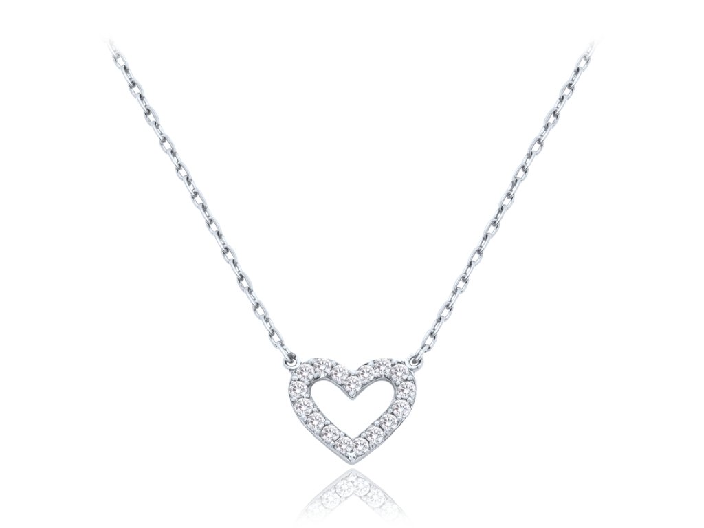 MINET Zlatý náhrdelník srdce z bílého zlata s bílými zirkony Au 585/1000 1,65g