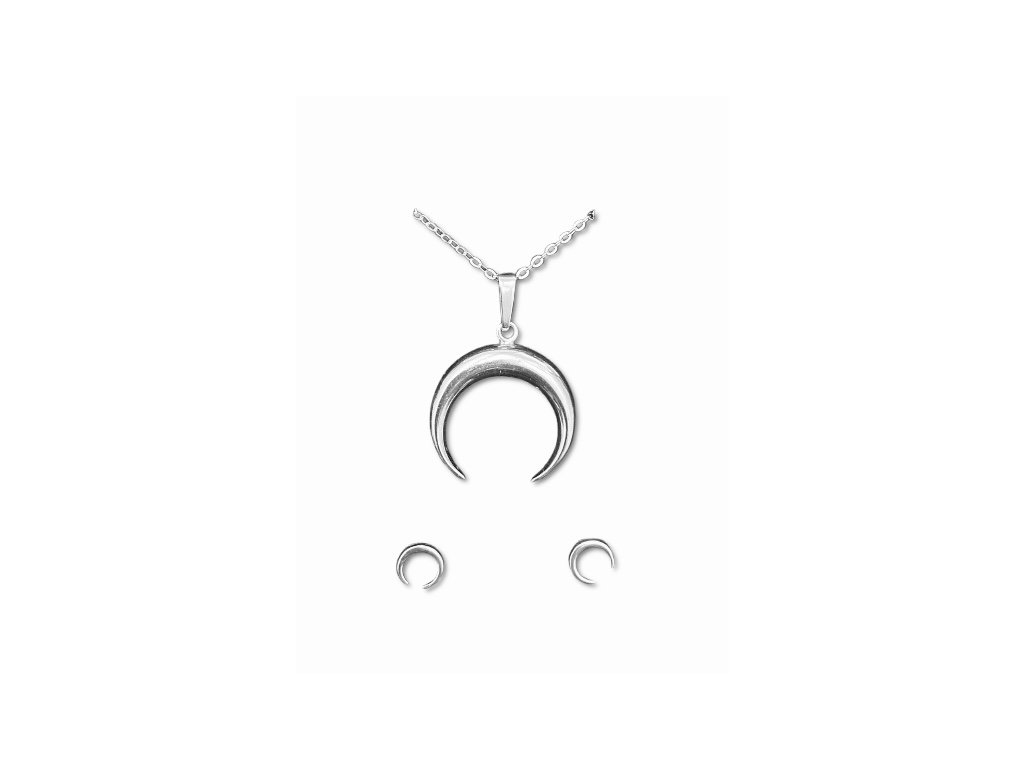 Moderní minimalistická souprava náušnic a náhrdelníku ve tvaru měsíčků. Řetízek je s posuvným očkem.