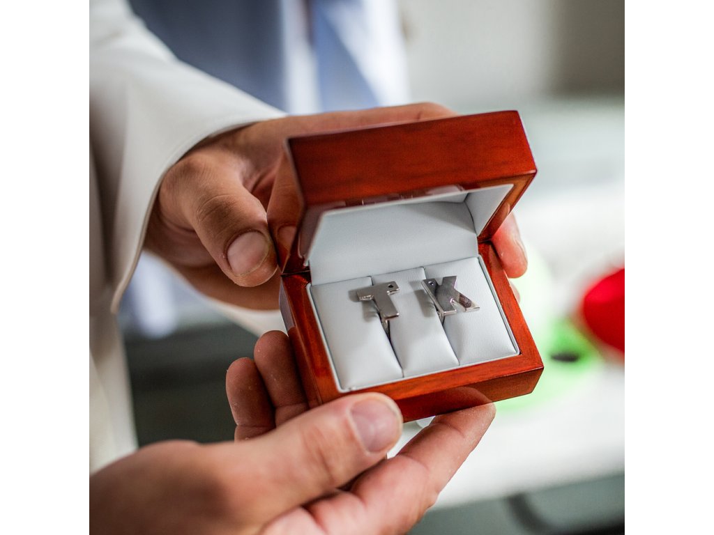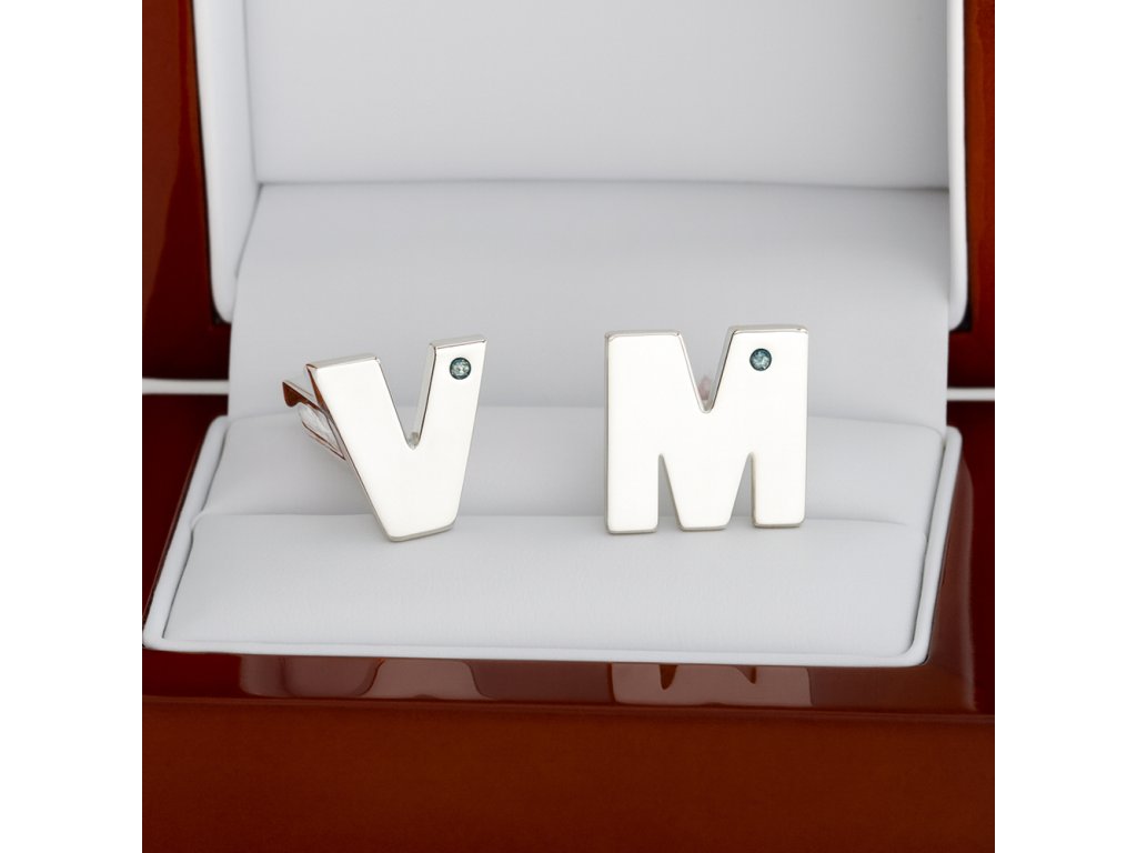 Stříbrné manžetové knoflíčky s modrými diamanty Leter