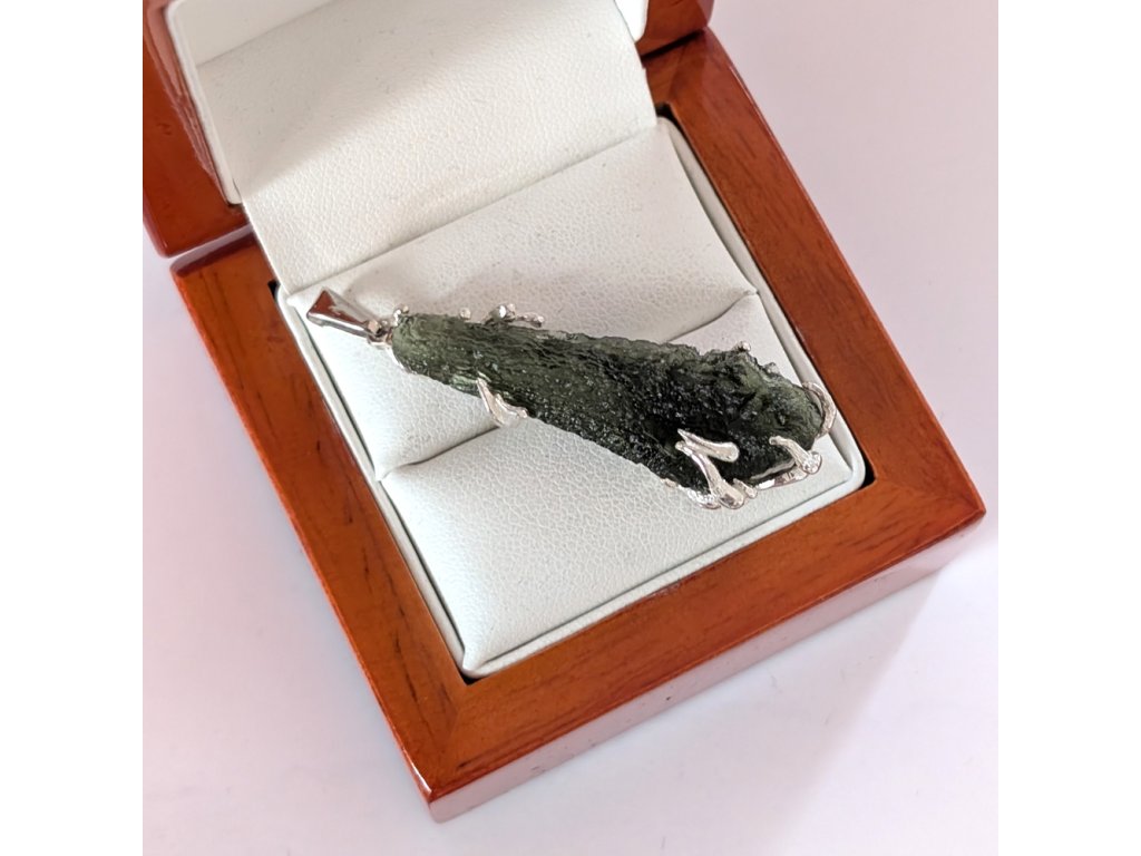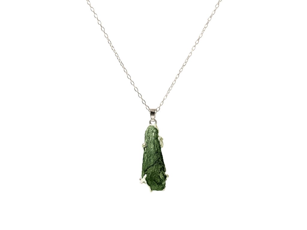 Objevte kouzlo české přírody v elegantní podobě – tento přívěsek s pravým vltavínem je originálním šperkem, který spojuje krásu surového kamene s drahým kovem. Každý kousek je jedinečný, ručně vyrobený v České republice s důrazem na detail a kvalitu zpracování. Originální autorský šperk, který už nikdy nebude mít nikdo jiný.
