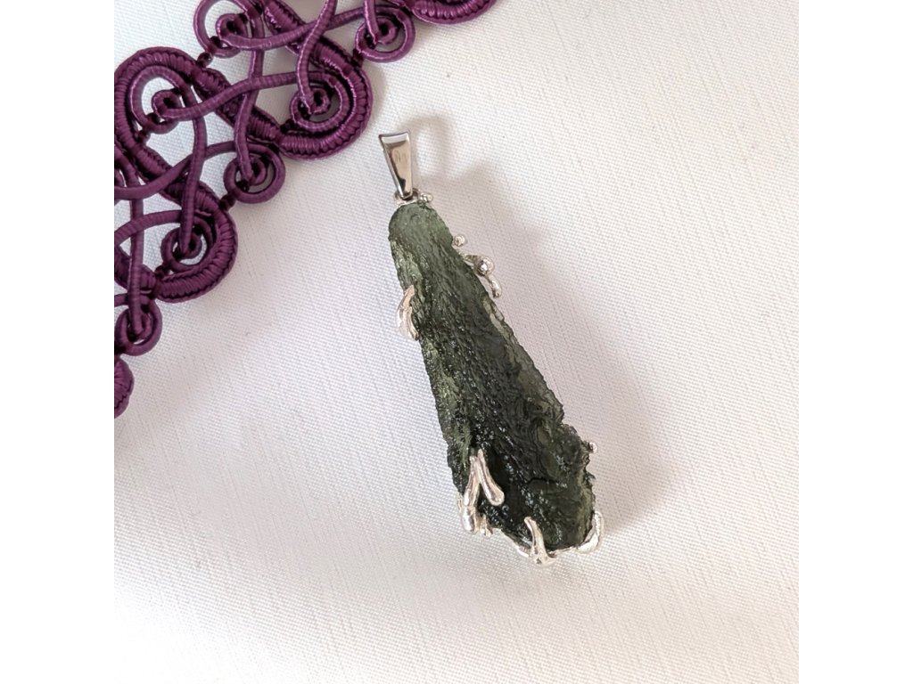 Přívěsek s přírodním vltavínem – ručně vyrobený v Česku