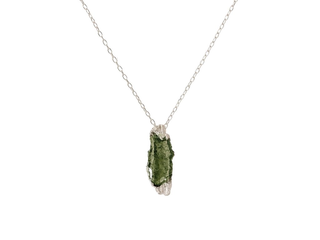 Objevte kouzlo české přírody v elegantní podobě – tento přívěsek s pravým vltavínem je originálním šperkem, který spojuje krásu surového kamene s drahým kovem. Každý kousek je jedinečný, ručně vyrobený v České republice s důrazem na detail a kvalitu zpracování. Originální autorský šperk, který už nikdy nebude mít nikdo jiný.