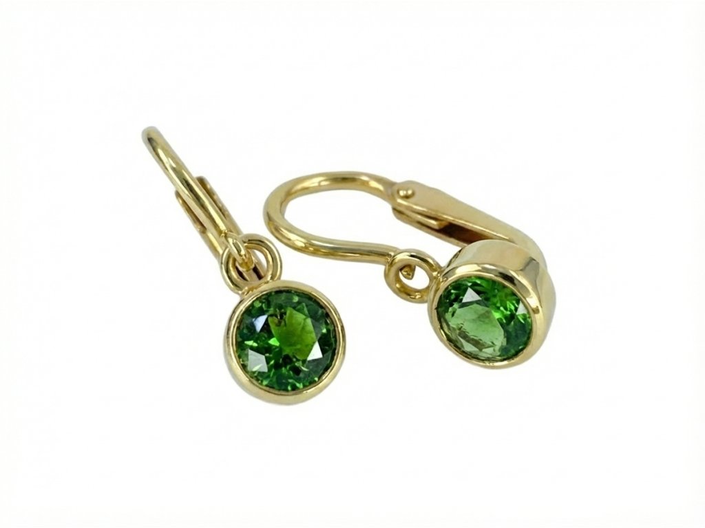 Krásné elegantní dětské náušnice s pravým přírodním vltavínkem ve žlutém zlatě ryzosti 585/1000 - 14karátů. Dětské naušnice jsou vyráběny tak, aby dobře seděly i v těch nejmenších ouškách a jsou opatřeny bezpečnostním zámkem. Díky kvalitnímu zpracování, vysokému třpytu a lesku je budou doprovázet po celou dobu jejich dětského věku a budou jejich oslnivou ozdobou. Certifikát o pravosti kamene.