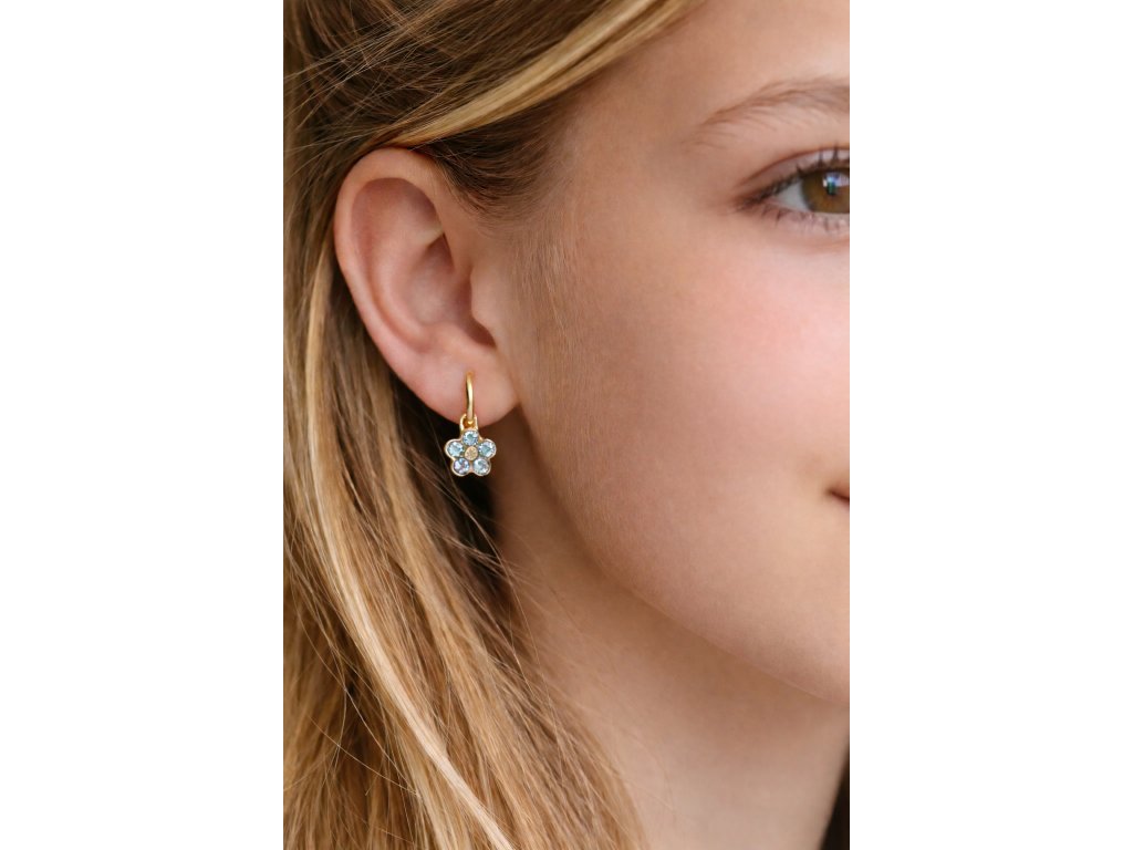 Něžný symbol radosti Klasický motiv pětilistého květu v kombinaci se světle modrými zirkony připomíná oblíbené pomněnky. Žluté zlato vytváří s modrými kameny harmonický a nadčasový celek.