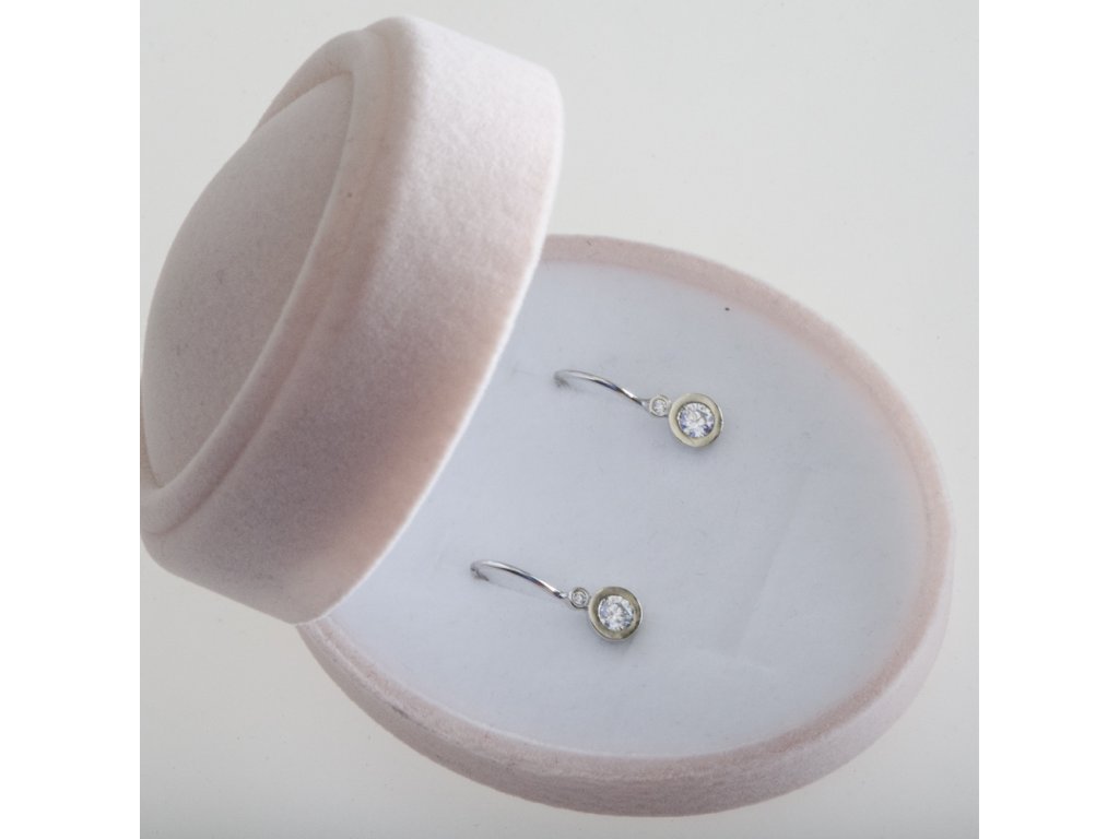 Elegantní náušnice z bílého zlata zaujmou svým nadčasovým designem a krásným třpytem čirých zirkonů. Hlavní kulatý zirkon je doplněn menším kamenem nad ním, což vytváří jemný a vyvážený vzhled, který působí decentně a přesto luxusně.