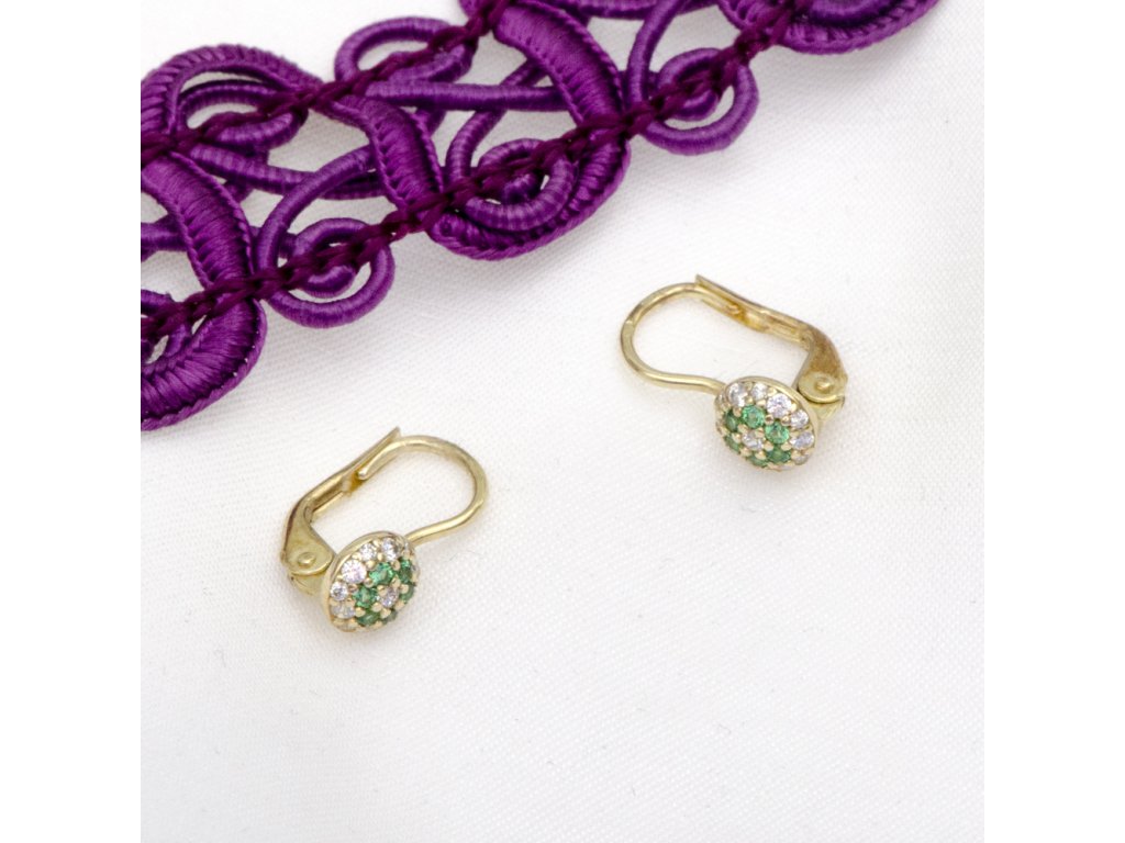 Zlaté náušnice polokoule s kameny