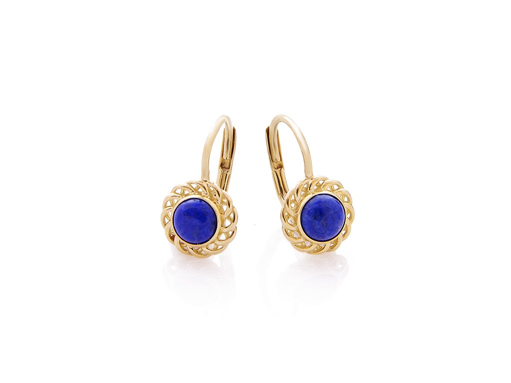 Zlaté náušnice mají mají ozdobné propletené okraje, do kterých jsou vsazeny krásné tmavě modré lápisy. Náušnice jsou vyrobeny ze žlutého zlata ryzosti 585/1000 - 14karátů. Tyto dětské náušnice jsou opatřeny zapínáním na klapku a u tohoto typu zapínání lze vyvořit pojistku proti samovolnému otevření, jsou vhodné pro děvčata od 8mi let věku až po jejich dospělost.