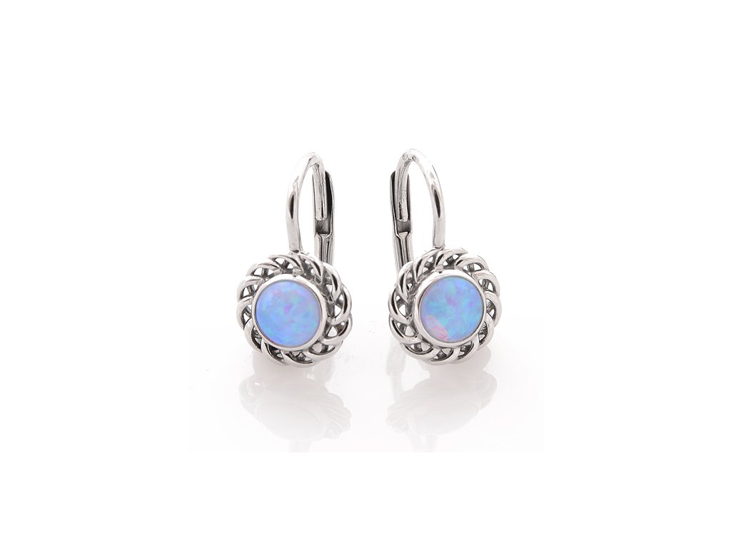 Náušnice, do kterých jsou vsazeny duhové syntetické opály, jsou vyrobeny z bílého zlata ryzosti 585/1000 - 14karátů. Kolem opálů je ozdobný proplétaný okraj. Tyto dětské náušnice jsou opatřeny zapínáním na klapku a u tohoto typu zapínání lze vyvořit pojistku proti samovolnému otevření, jsou vhodné pro děvčata od 8mi let věku až po jejich dospělost.