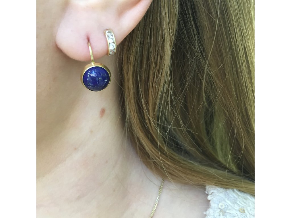 Krásné zlaté náušnice jsou vyrobeny ze žlutého zlata ryzosti 585/1000 - 14 karátů. Do náušnic je vsazen přírodní kámen Lápis Lazuli, který má léčivé účinky. Pomáhá při detoxikaci, snižuje nespavost, krevní obtíže, bolesti hlavy a posiluje imunitní systém. Náušnice jsou vhodné pro dívky a ženy každého věku.