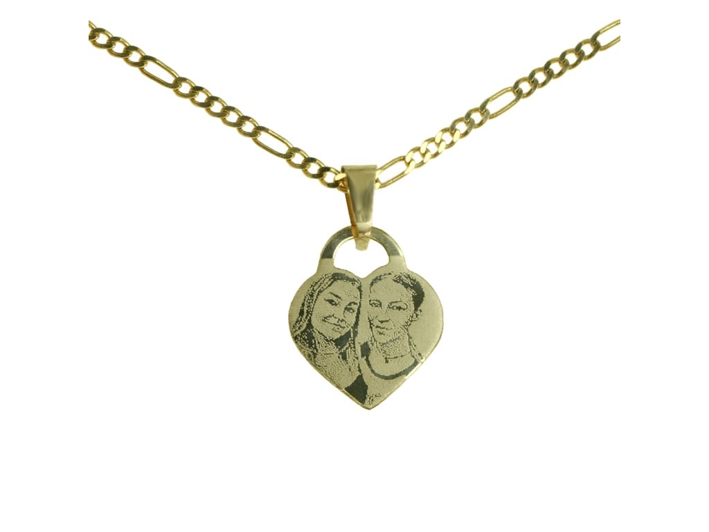 Zlatá destička s možností rytí vlastního textu či přenosem fotografie jako přívěsek ze žlutého zlata ryzosti 585/1000-14karátů. Srdíčko se hodí jako dárek z lásky k narozeninám či k významné události jako je narození dítěte. Přívěsek vyrábíme také v bílém zlatě.