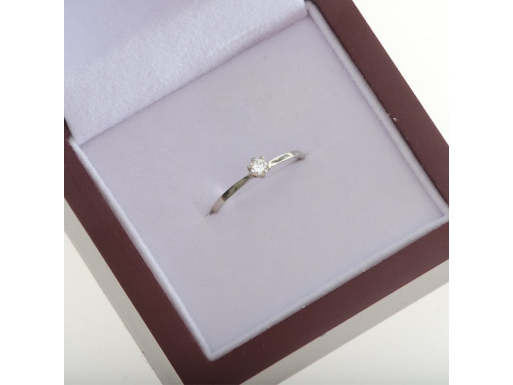 Luxusní prsten z bílého zlata ryzosti 585/1000-14karátů s krásným diamantem. Dynamickou čistotu s oslnivým třpytem najdete ve všech našich špercích. Při výrobě jsou kladeny velké důrazy na detail a precizní zpracování. Tento šperk je vhodný jako dárek k významné životní události například k zásnubám.